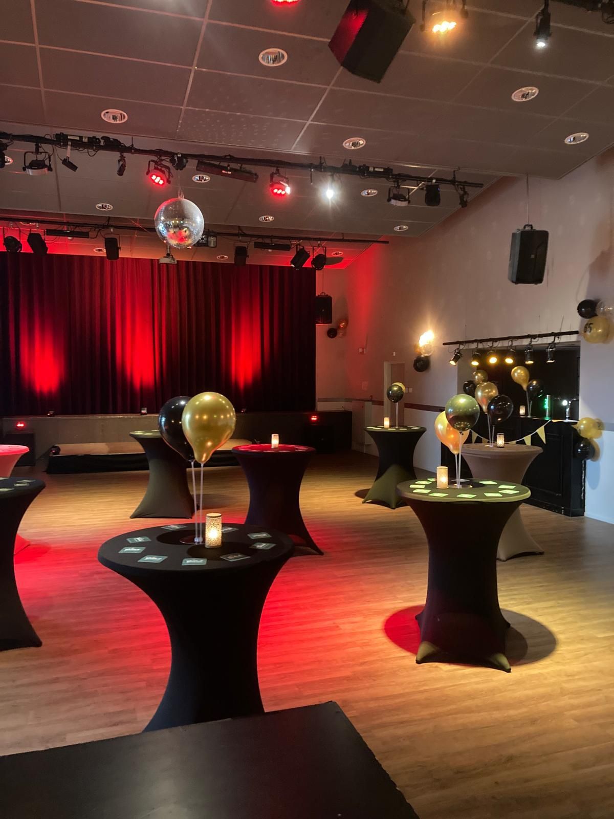 Naast de gymzaal beschikken wij over een podium met bijbehorende zaalruimte. Deze ruimte leent zich uitstekend voor voorstellingen, optredens, presentaties, repetities, lezingen en andere culturele of maatschappelijke activiteiten. Het podium biedt voldoende mogelijkheden voor licht en geluid, afhankelijk van de wensen.